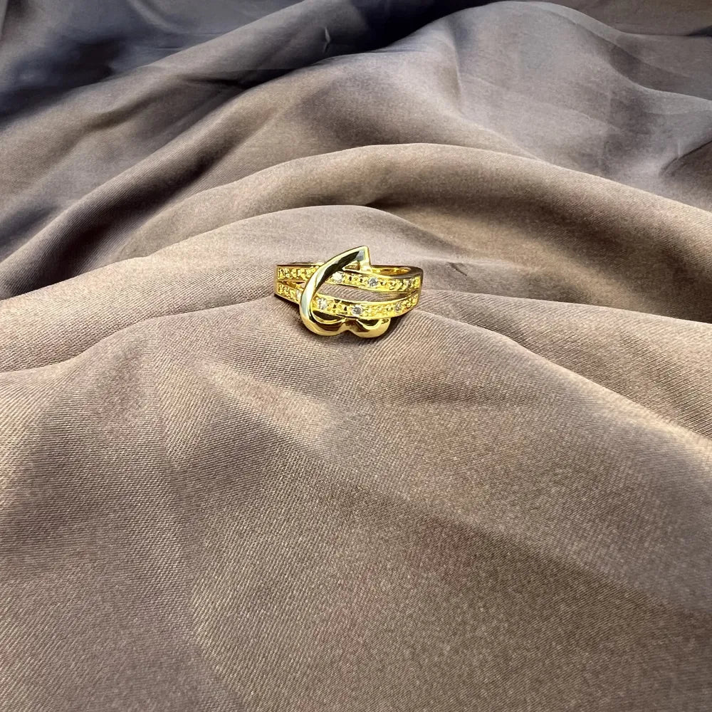 Stylish Gold-tone Crossed Band Ring with Crystals